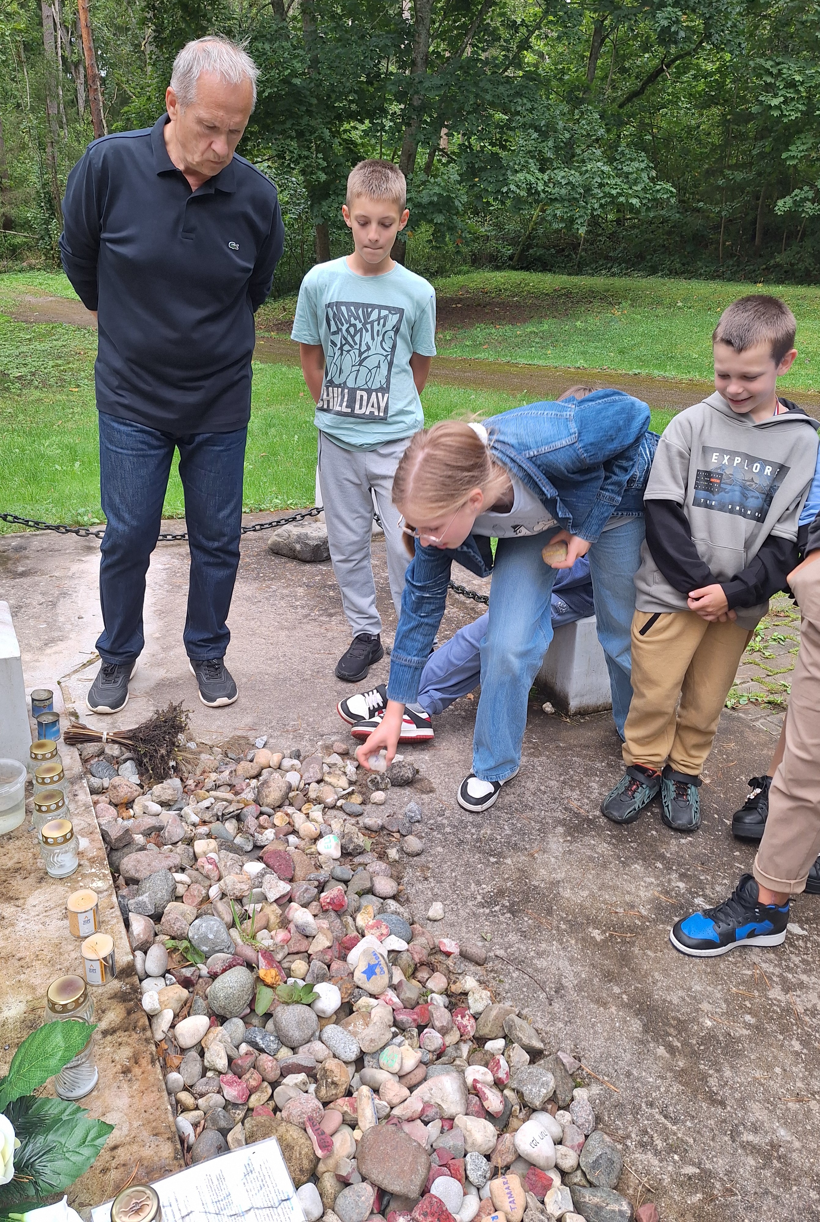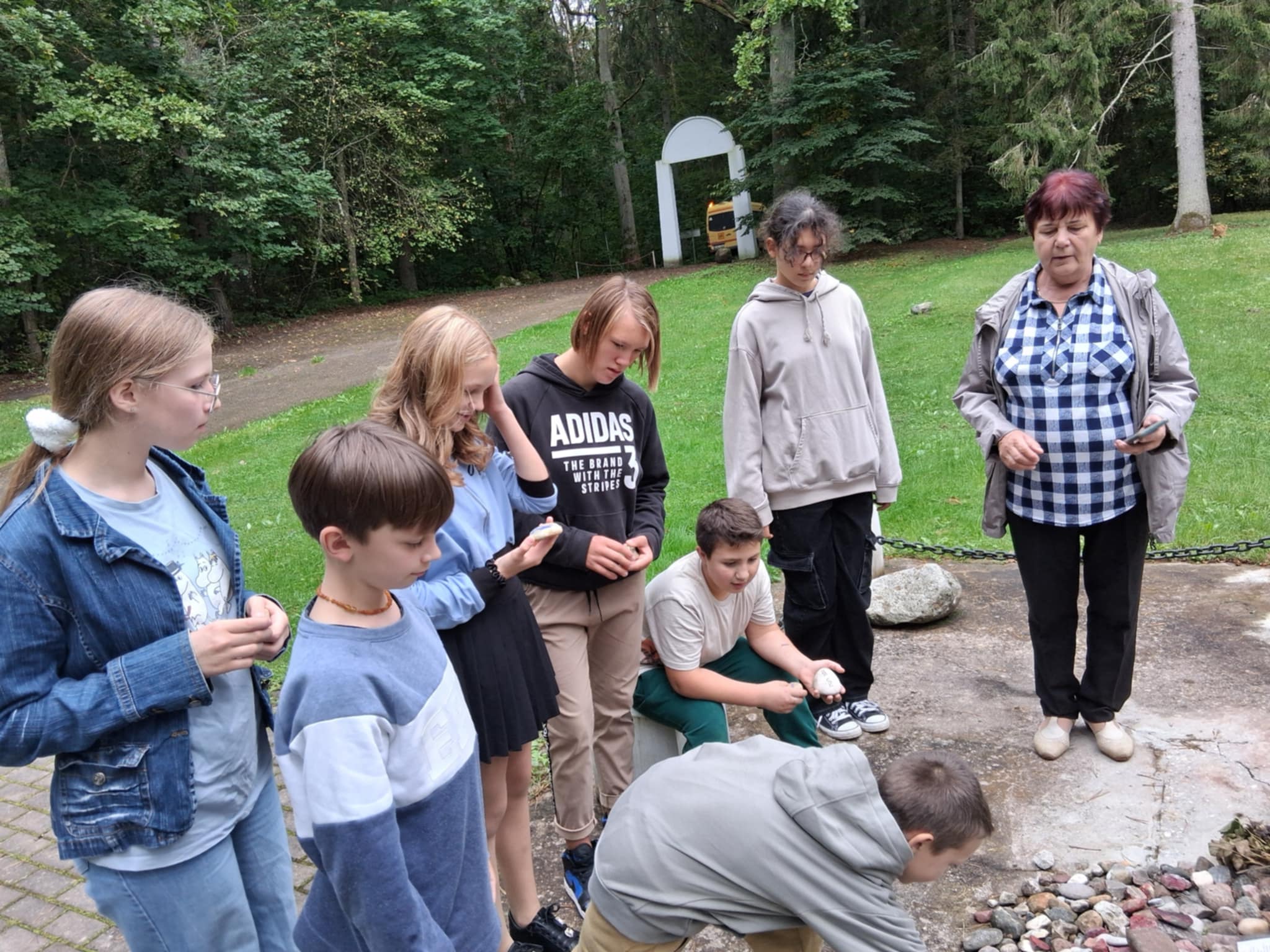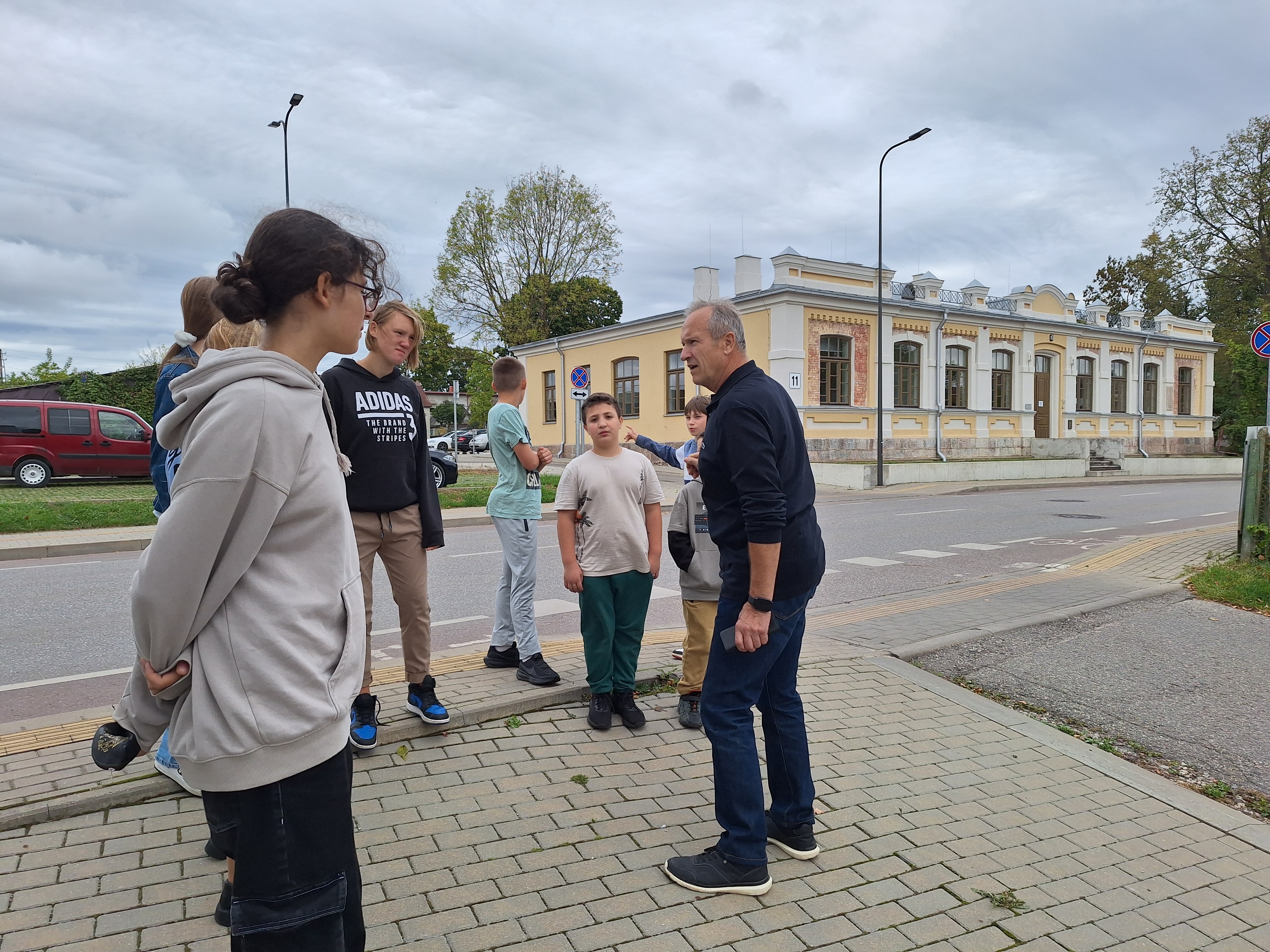 Po to visi vyko prie buvusio sinagogos bei žydų mokyklos pastatų. Mokiniai susidomėję klausėsi istorijos mokytojo pasakojimų, apžiūrėjo prie buvusios sinagogos pastato atminimo akmenį, kurį į grindinį yra įmontavusi mūsų mokykla.