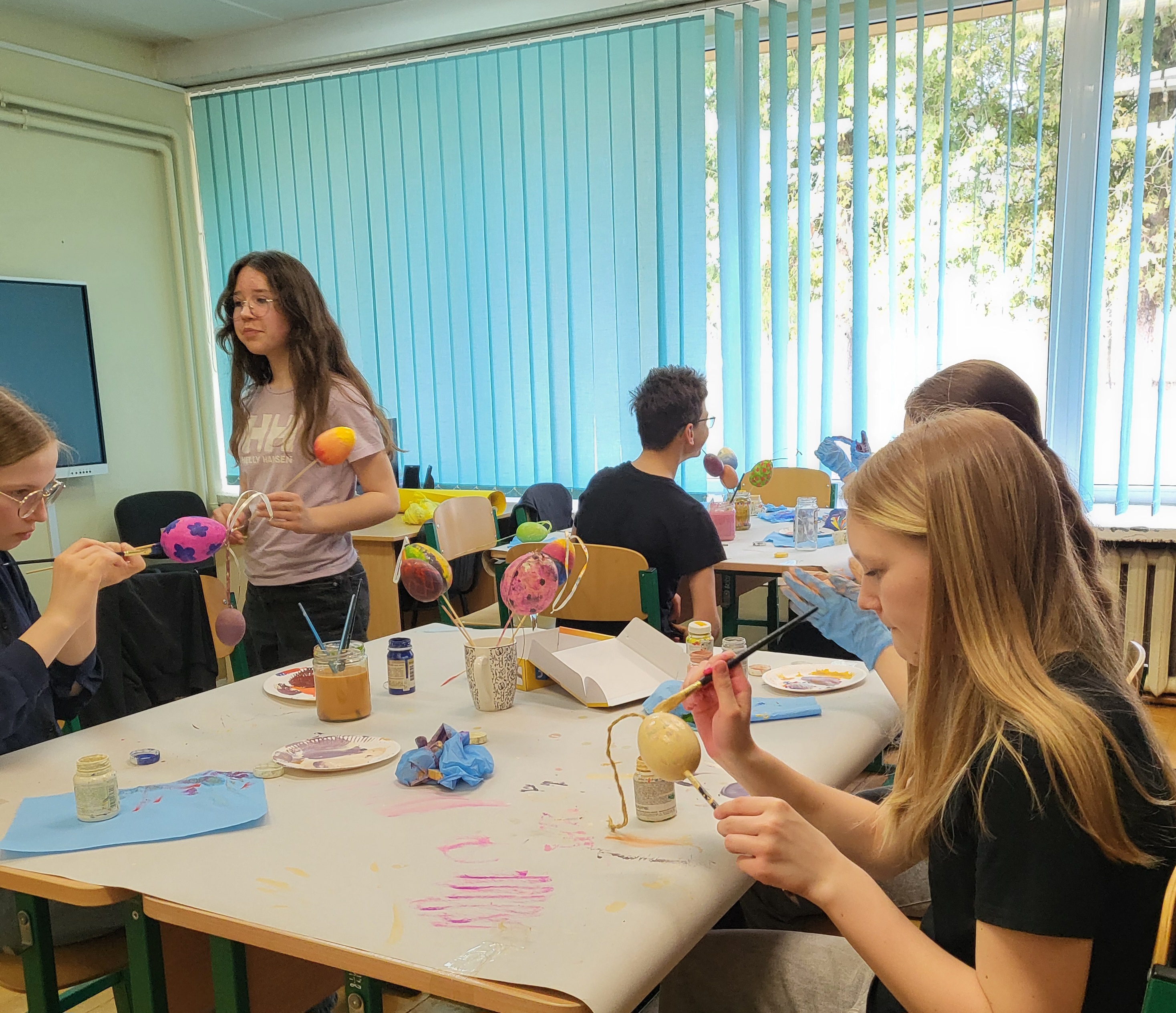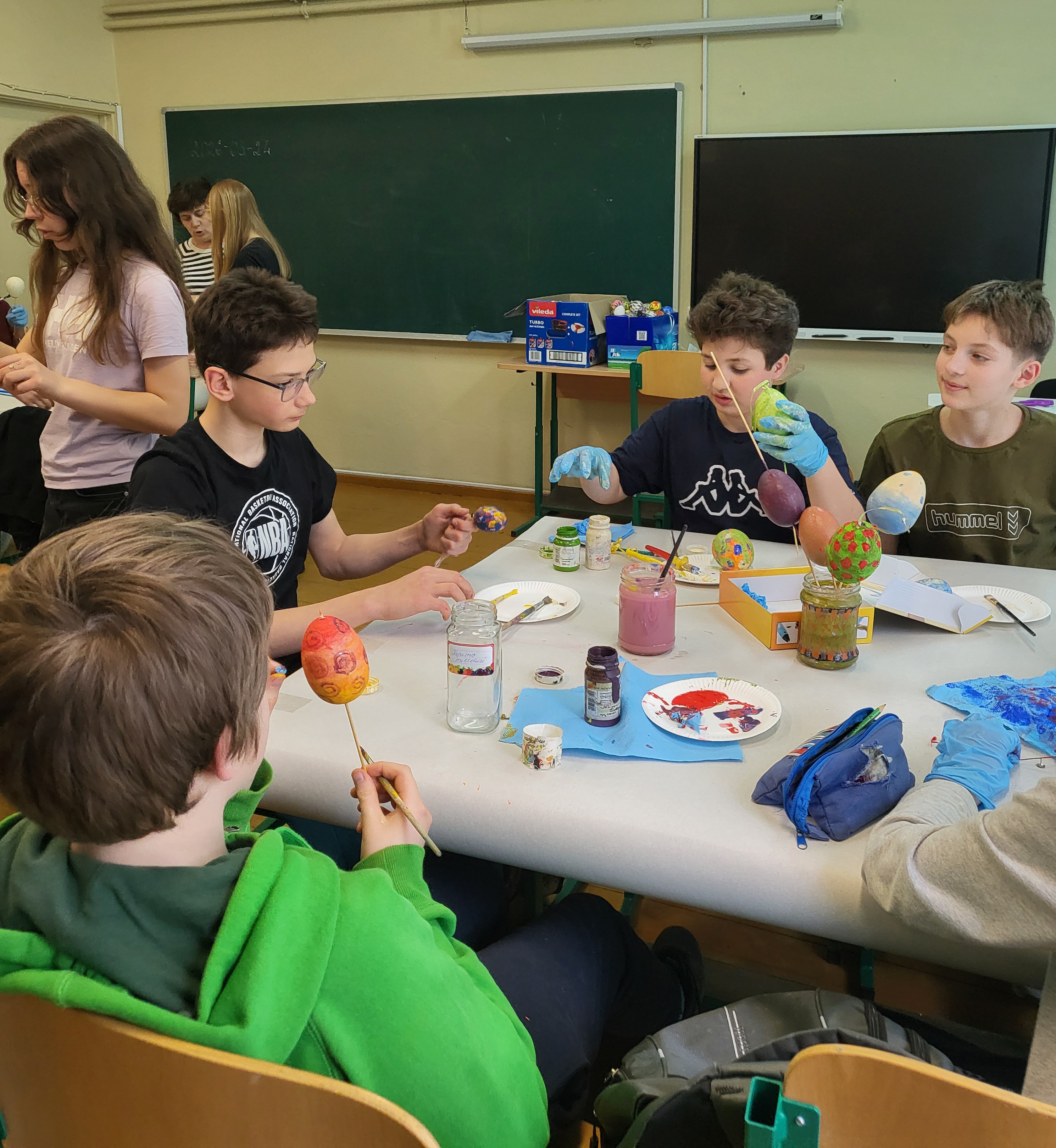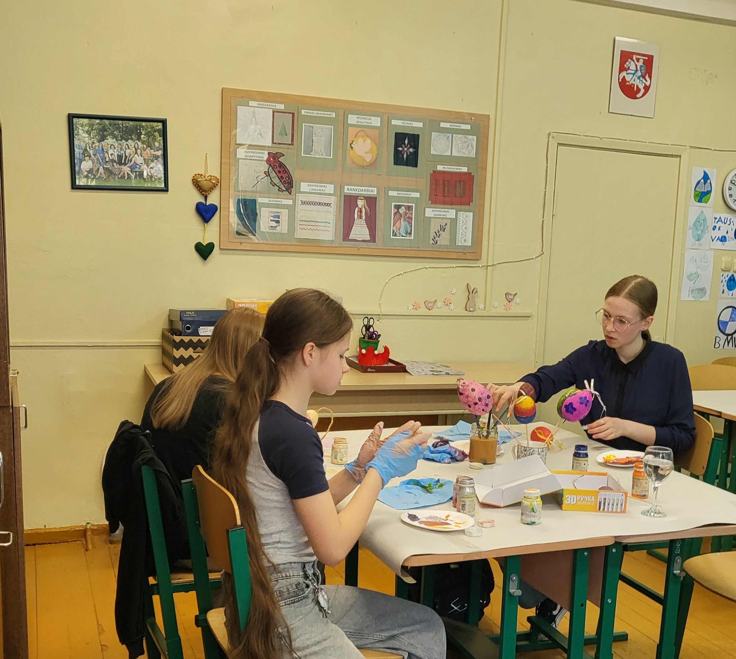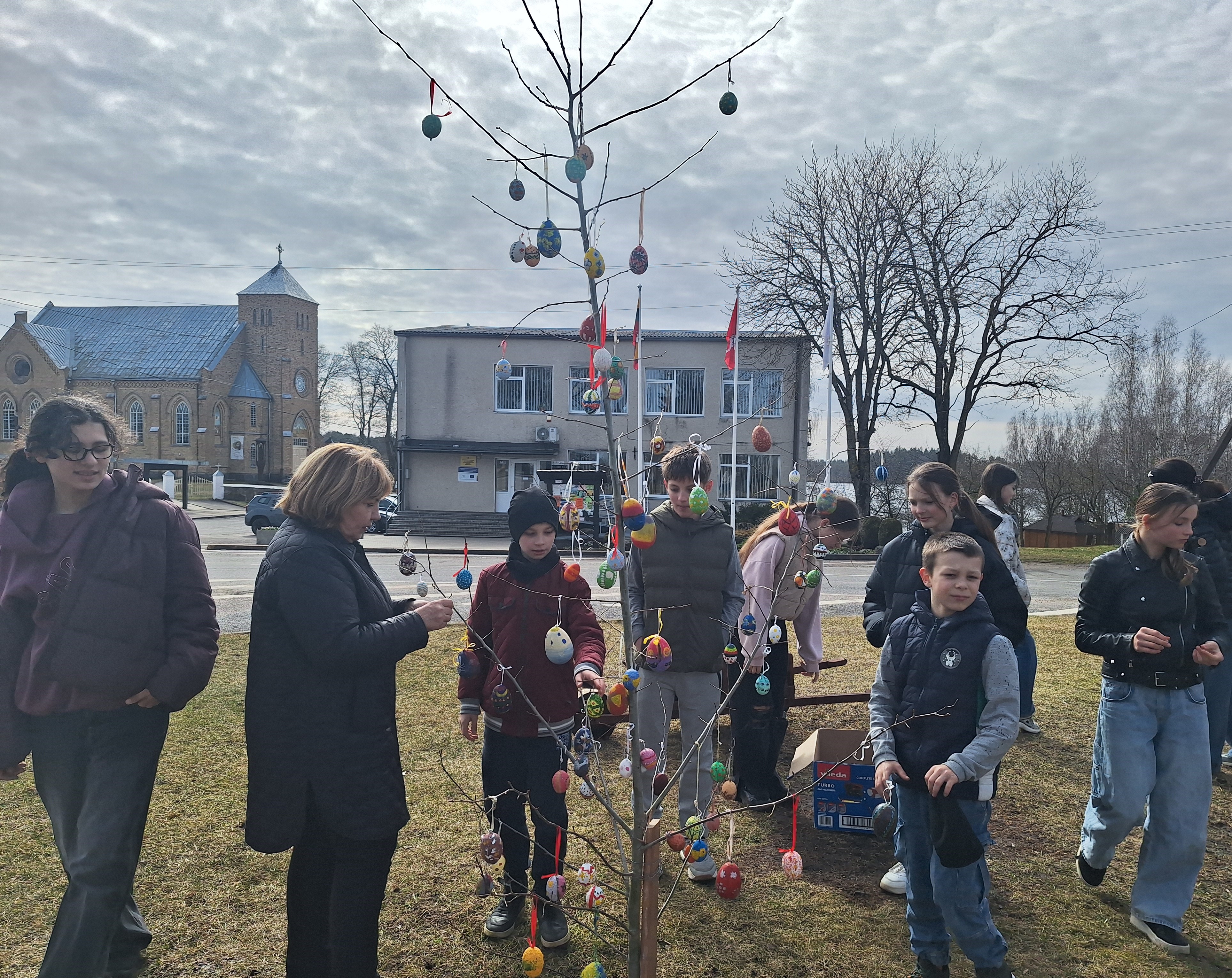 Artėjant šv. Velykoms 5, 6 kl. mokiniai, vadovaujami technologijų mokytojos Valerijos Jurevičienės, dekoravo naujus bei atnaujino ankstesniais metais dekoruotus margučius. Jais miestelio centre mokiniai papuošė tris medelius, kurie papildė šventinėje aikštėje kitas bendruomenės sukurtas dekoracijas.